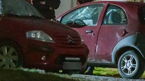 Även parets bil ska ha blivit sönderslagen med någon typ av föremål. SVT har tagit del av bilder som visar bilen och den skadade fönsterrutan.